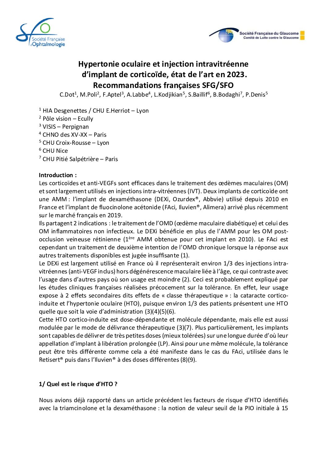 Les injections intra-vitréennes (IVT) ont révolutionné depuis plusieurs années la prise en charge des affections rétiniennes, notamment la DMLA, l’œdème maculaire d’origine inflammatoire ou diabétique, l’occlusion veineuse rétinienne etc.. Ces injections concernent...