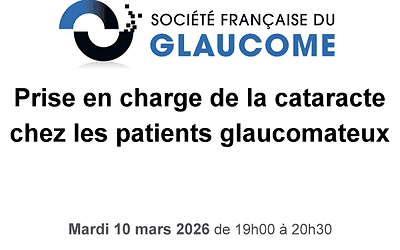 Webinaire du 10 mars 2026 19:00 Glaucome et IOL premium Dr Esther BLUMEN 19:18 Cataracte et glaucome à angle fermé Dr Elisa BLUWOL 19:36 Chirurgies combinées cataracte et chirurgie filtrante Pr Cédric SCHWEITZER 19:54 Chirurgies combinées cataracte et MIGS...