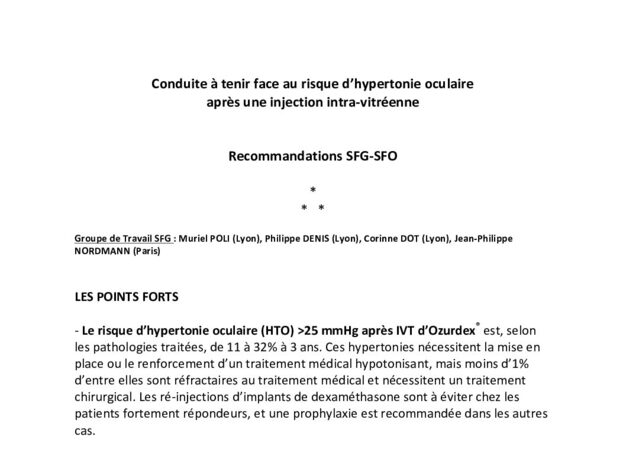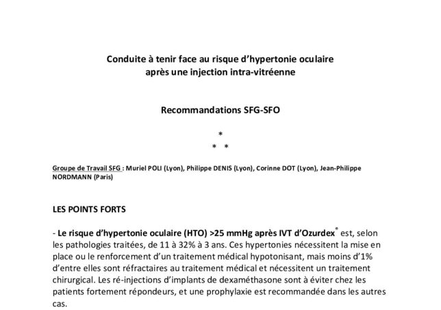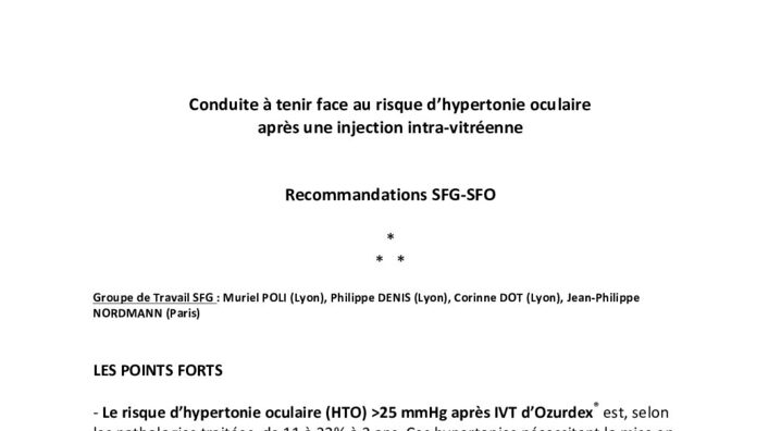 Conduite à tenir face au risque d’hypertonie oculaire après une injection intra-vitréenne Recommandations SFG/SFO 2017